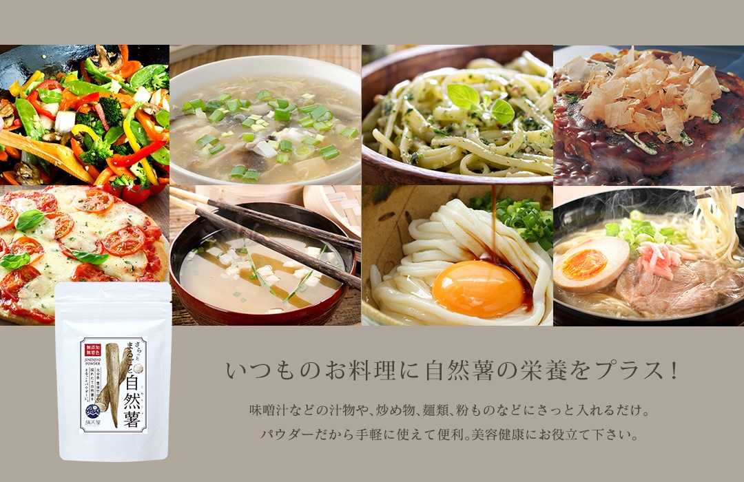 えぐみやクセがなく、栄養たっぷりの自然薯の粉末は、栄養補助健康食、美容食として最適です。
