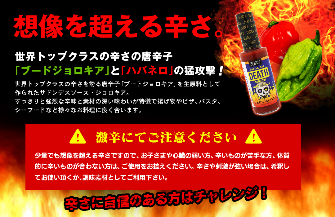 <超絶 激辛注意>世界トップクラスに辛い唐辛子ブートジョロキアとハバネロの最強クラスタッグの激辛調味料!辛さだけじゃなく新鮮材料を使用し美味しさも追求したリッチなホットソース